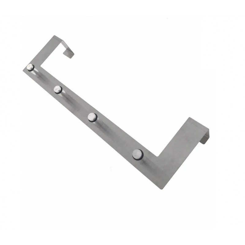 Perchero con 4 ganchos para colgar en la puerta. Apto para puertas de 40 mm de grosor. Dimensiones: 30 x 10 x 4 cm.