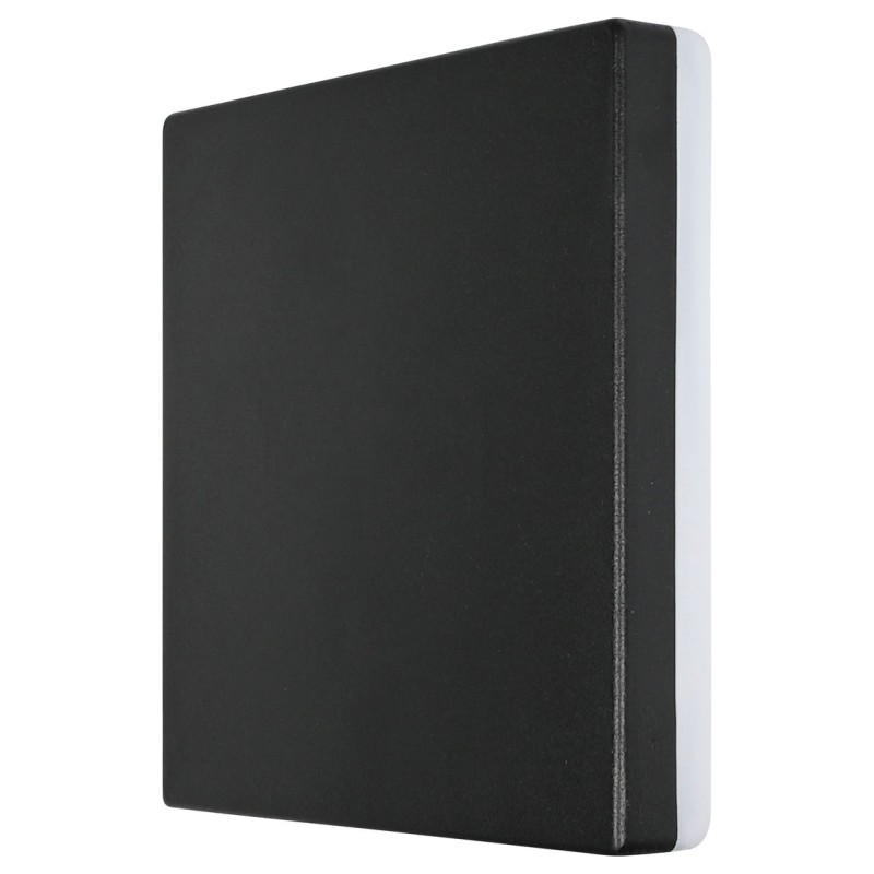 Esta lámpara de pared cuadrada es negra por delante e ilumina toda la parte trasera. Tamaño: 15 x 15 cm. Longitud del cable: 30 cm. Material: aluminio + PMMA. Color: negro.