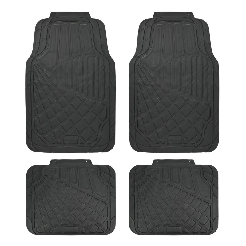 - Juego de 4 alfombrillas para coche - Para todas las estaciones - Universales - Se adaptan a cualquier coche - Como cada coche es diferente, estas alfombrillas se pueden recortar a la medida deseada - Fáciles de limpiar - Protegen el suelo de la suciedad como barro, nieve o agua - Dimensiones delanteras: 68 x 45 cm - Dimensiones traseras: 35 x 45 cm