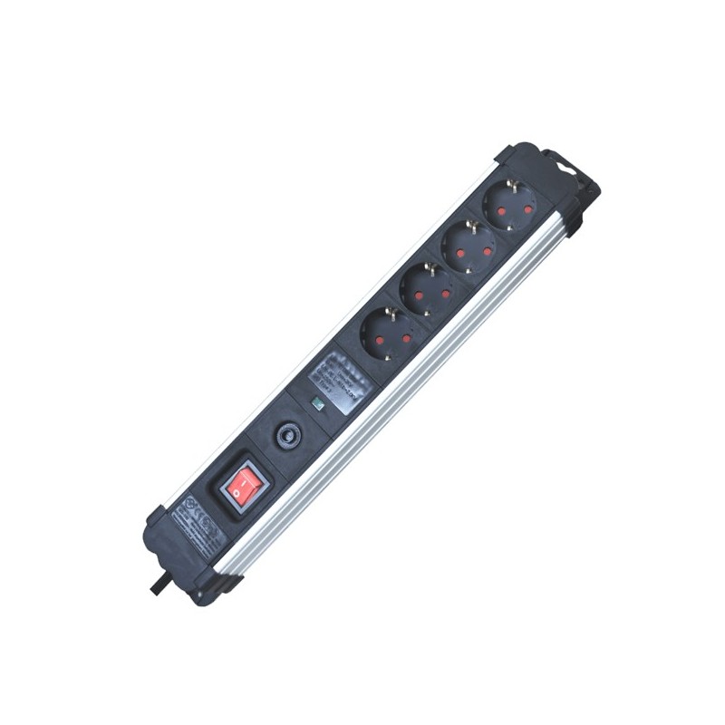 REGLETA INDUSTRIAL 4 TOMAS 1.5 METROS 3X1.5mm² MULTI-PROTEK INTERRUPTOR CON PROTECCION SOBRETENSION + SOBRECALENTAMIENTO SILVER