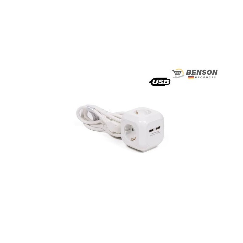La toma de extensión está equipada con 3 tomas para dispositivos de 250V. Además, este producto cuenta con 2 conexiones USB para alimentar o cargar tus dispositivos. Esta regleta se puede colocar sobre un escritorio o mesa. Además, este