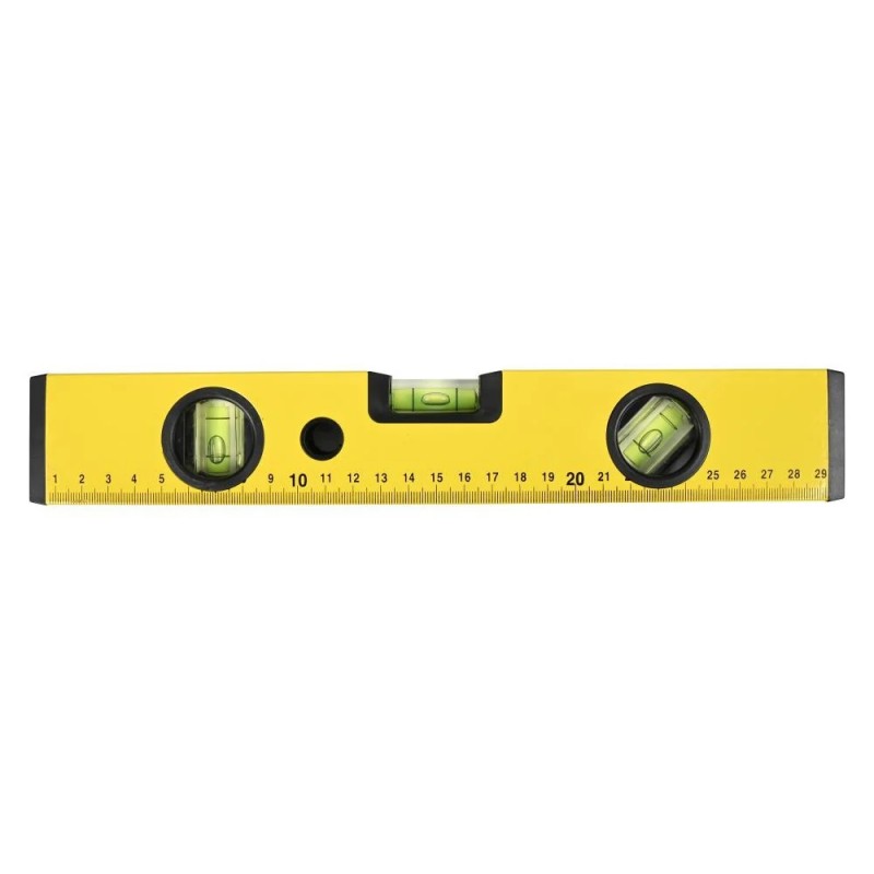 Este nivel de burbuja de aluminio de 30 cm es una herramienta de medición indispensable tanto para profesionales como para aficionados al bricolaje. Cuenta con tres niveles: horizontal, vertical y diagonal, lo que permite tomar medidas precisas en múltiples direcciones. Las claras marcas de medición a lo largo de toda la longitud facilitan la lectura de distancias.