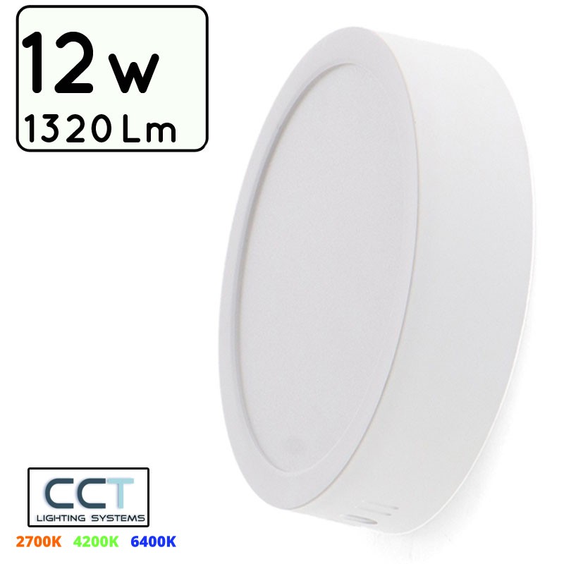 Plafon LED Circular de 12W con CCT ajustable (3000K-4000K-6000K) Φ169mmX29mm, rendimiento de hasta 1320 lúmenes, diseño orientable, fabricado en PC/ABS. Perfecto para iluminación versátil y eficiente