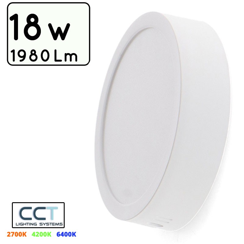 Plafon LED Circular de 18W con CCT ajustable (3000K-4000K-6000K) Φ216mmX30mm, rendimiento de hasta 1980 lúmenes, diseño orientable, fabricado en PC/ABS. Perfecto para iluminación versátil y eficiente